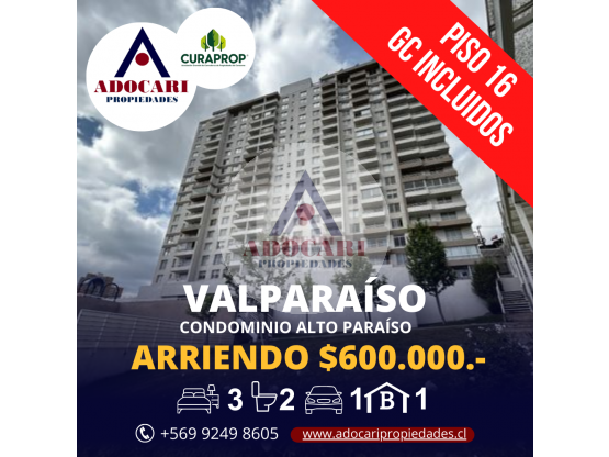 Pesos Chilenos🏡 Arriendo Departamento Condominio Alto paraíso– Cerro Polanco, Valparaíso