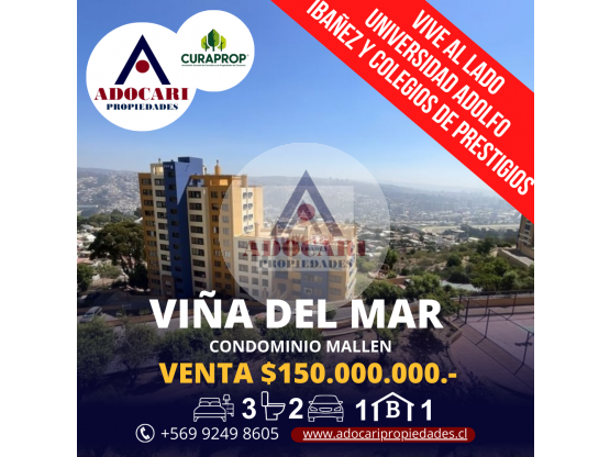 VIÑA DEL MAR - DEPTO CONDOMINIO MALLEN - 3D 2B 1E 1B