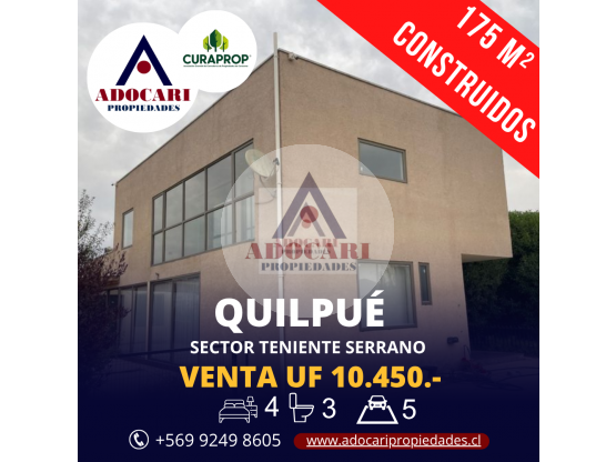 En el consolidado sector Teniente Serrano, con sólida casa de 175 m² construidos. Entorno residencial con excelente conectividad hacia Viña del Mar, Valparaíso y Lo Orozco. Cercano a supermercado, comercio local y locomoción.