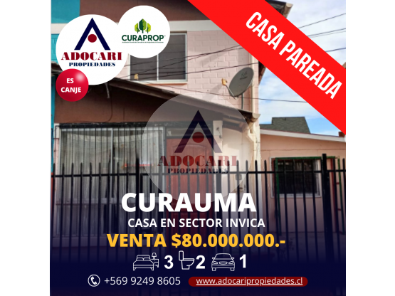 CURAUMA - CASA EN SECTOR DE INVICA - 3D 2B 1E