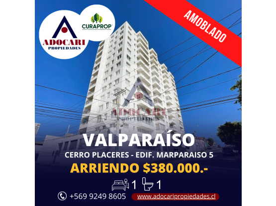 ¡ADOCARI PROPIEDADES ARRIENDA DEPARTAMENTO EN EDIFICIO MARPARAISO 5, CERRO PLACERES!