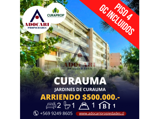 Pesos Chilenos🏡 ADOCARI PROPIEDADES ARRIENDA HERMOSO DEPARTAMENTO EN JARDINES DE CURAUMA