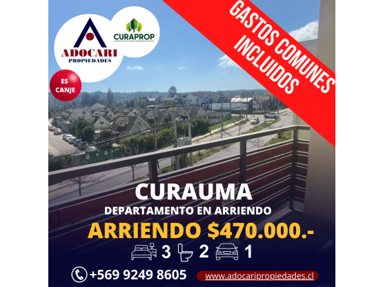 Pesos Chilenos🏡 ARRIENDA DEPARTAMENTO – CURAUMA, VALPARAÍSO