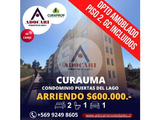 Pesos Chilenos🏡 Departamento Amoblado en Arriendo – Condominio Puertas del Lago, Curauma