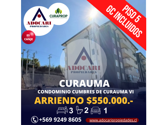 Pesos Chilenos🏢 DEPARTAMENTO EN ARRIENDO – CONDOMINIO CUMBRES DE CURAUMA VI