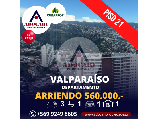 Pesos Chilenos🌅 Adocari propiedades arrienda departamento con vista a la bahía
