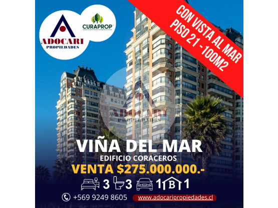 VIÑA DEL MAR / CORACEROS / HERMOSO Y GRAN DEPTO 3D 3B 1E 1B