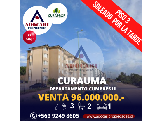 Hermoso departamento ubicado en el consolidado sector de Curauma, Valparaíso, a pasos de supermercados, centros comerciales, colegios y principales vías de acceso.
