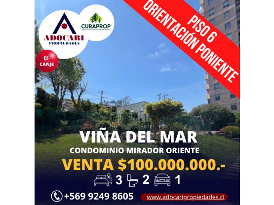 VIÑA DEL MAR - DEPTO CONDOMINIO MIRADOR ORIENTE - 3D 2B 1E