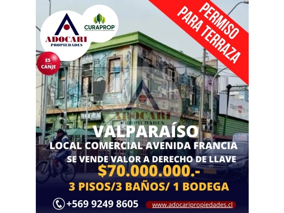 Pesos Chilenos🏬 SE VENDE DERECHO A LLAVE – LOCAL COMERCIAL EN CENTRO VALPARAÍSO
